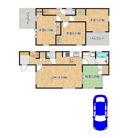 築年月 2026年4月築 間取り 4LDK (LDK16.2/和室5.25/洋室6.75/洋室6.51/洋室7.37)