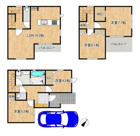 | 築年月 | 2026年6月築 | 間取り | 4LDK (LDK16.5/洋室5.2/洋室4.2/洋室6.1/洋室7.7) | ||