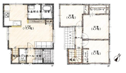 | 築年月 | 2026年4月築 | 間取り | 3LDK (LDK15.4/洋室4.6/洋室5.1/洋室6.2) | ||